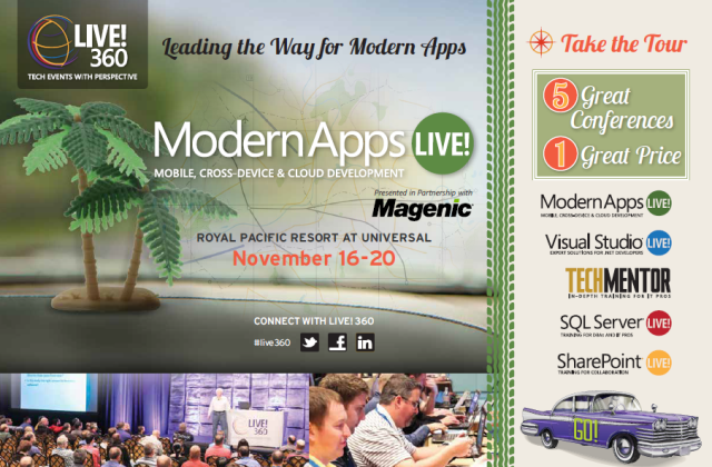 Presented in partnership with Magenic, Modern Apps Live! brings Development Managers, Software Architects and Development Leads together to break down the complex landscape of mobile, cross-platform, and cloud development and learn how to architect, design and build a complete Modern Application from start to finish.